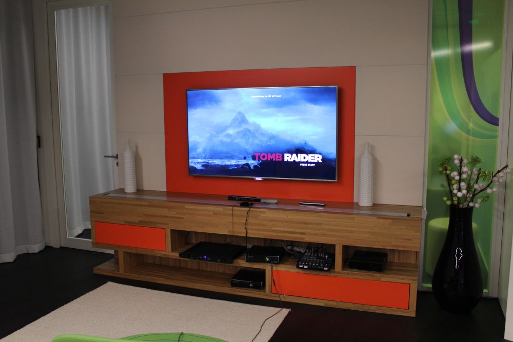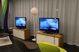 C’est une salle de taille moyenne, décorée aux couleur de Microsoft et de la Xbox 360. Il y a déjà quelques personnes en train de jouer. Nous allons saluer Catherine et Sacha qui étaient là pour nous accueillir. Nous discutons un peu avec eux et regardons les autres terminer leur partie. Une fois fini, ils se lèvent et donnent brièvement leurs impressions, puis s’en vont pour nous laisser la place.