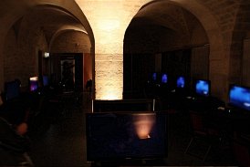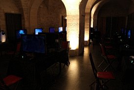 19h15 : Meagan est très excitée à l’idée que nous jouions. Elle nous conduit vers la salle où nous allons pouvoir tester la démo. Beaucoup de petits bureaux munis d’un superbe écran plat chacun, d’une Xbox 360, avec une manette chromée et un super casque stéréo ! Sur tous les écrans nous pouvions voir la première bande annonce du jeu en image de synthèse.
