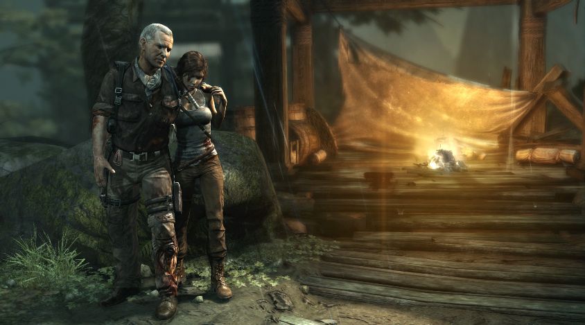 Lorsque Lara rencontre Sam et l’homme étrange, tout ne se passe pas exactement comme dans la cinématique du gameplay qu’on connait. Une fois que Lara serre la main de l’homme, elle va s’assoir près du feu et Sam commence à raconter l’histoire de la reine "Himiko" à l’homme. Lara intervient en disant que Sam adore raconter cette histoire. Sam en dit un peu plus et Lara ajoute : « Et c’est là que je n’arrive plus à la suivre haha... ». L’homme semble intéressé par cette histoire et ne montre aucun signe qui laisse penser qu’il est méchant. Finalement, on voit au travers des yeux de Lara, qui s’endort. Lorsqu’elle se réveille, Sam et l’homme ont tous les deux disparus et Lara s’inquiète. Elle part à leur recherche en appelant Sam et se prend le pied dans un piège à loup. Vous l’aurez compris : fini l’enlèvement de Sam sous les yeux de Lara ! Daniel Bisson, le directeur du jeu, nous a expliqué qu’ils ont changé ça parce qu’ils avaient peur que tout le monde ne comprenne pas pourquoi l’homme devient soudainement méchant et s’empare de Sam...